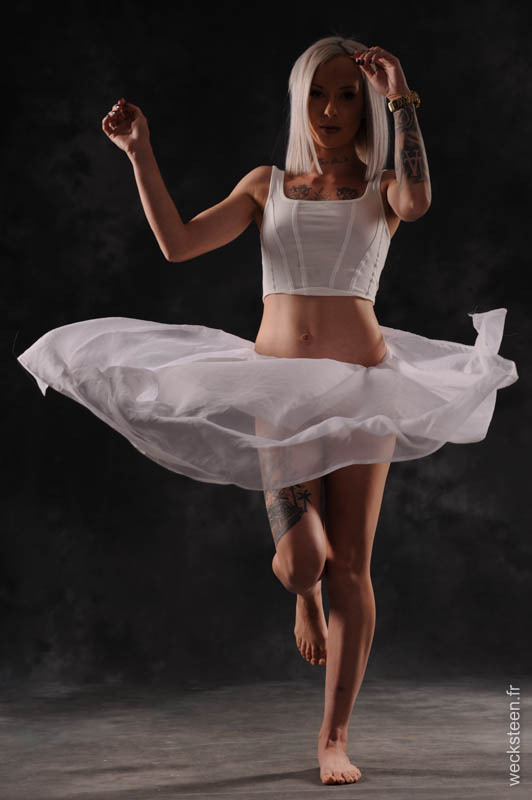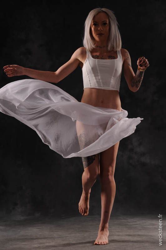 tourbillon en robes et voiles dans le vents en clair obscur très