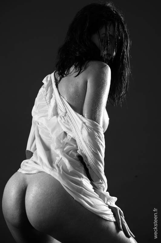progressivement ses vêtements, le regard coquin pour finir dans la